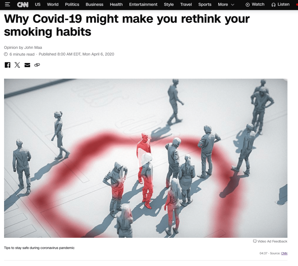 Given the adverse effect on respiratory health, the current coronavirus pandemic should serve as a message to both smokers and vapers to quit promptly and take immediate action to reduce their risks of viral transmission.