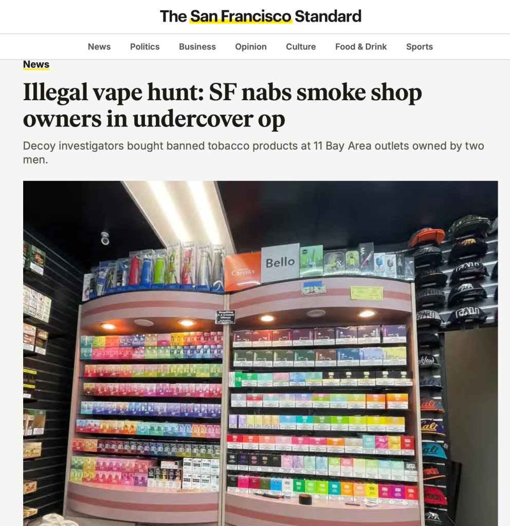 “These smoke shop owners blatantly disregarded laws established to protect young people from the harms of tobacco use,” City Attorney David Chiu said in a statement. “Not only were they selling banned flavored tobacco products, but they didn’t even have a San Francisco tobacco permit.”